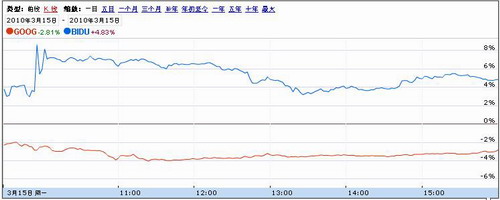 3月16日消息,受谷歌将退出中国市场传言的影响,百度股价在当地时间周一的常规交易中上涨26.6美元,涨幅为4.8%,报收于576.84美元,不但创下1个多月以来的比较高单日涨幅,股价也首次超过谷歌。